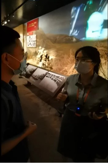 一位来这里参观的青年教师和我们分享了她的参观感受。她说这些展品属于红色印记,每一个文物展示出来的都是那个时代特殊的痕迹。她感触最深的是在那样的一个年代里,在外有敌军,内部生产力非常低下的恶劣情况下,先辈能够做出如此巨大的贡献,她感觉非常震撼!她还建议大家应该继承先辈们的延安精神,不怕吃苦,一定要踏踏实实地把事情做好。回去之后,她也将把这些精神传递给学生,号召学生们继承和发扬伟大的延安精神。