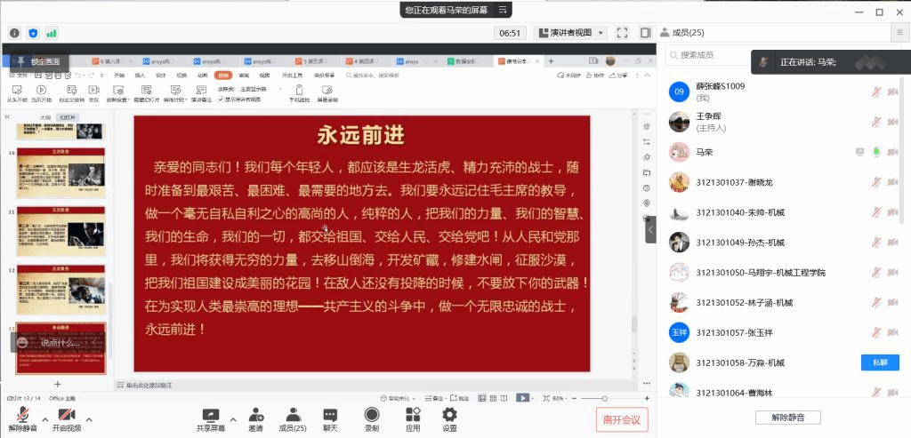 硕1009党支部于线上召开了以“踔厉奋发,笃行不怠”为主题的组织生活会。