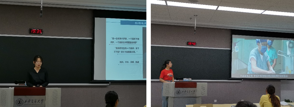 陈曦同志分享了中国肝胆外科之父吴孟超院士用一生诠释“医生”的故事,他主导建立了世界上规模最大的肝胆疾病诊疗中心和科研基地,建立了世界上最大的肝癌病理标本库,培养了许多肝胆外科领域的优秀人才。通过一个短片,大家切身感受到了吴老胸怀祖国、服务人民,勇于创新、勇攀高峰,坚守学术道德、严谨治学,甘为人梯、奖掖后学的医者仁心。