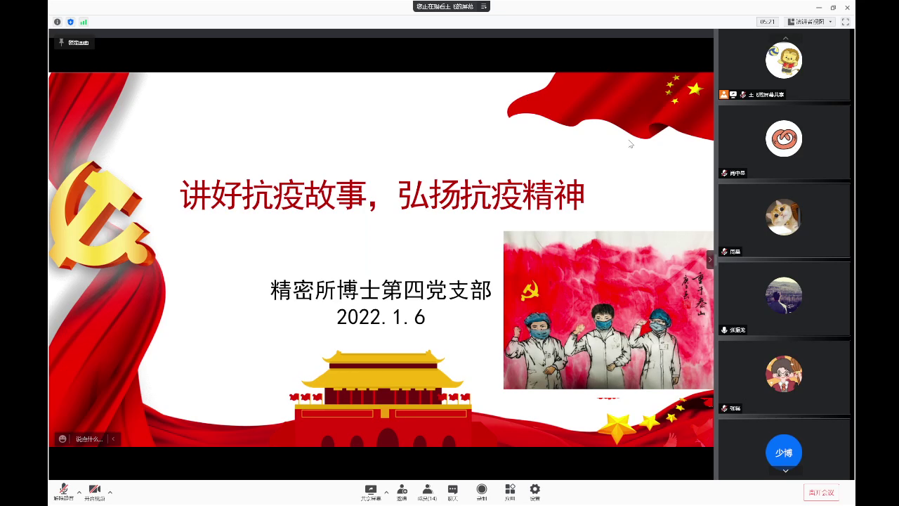 精密所博士第四党支部举办“讲好抗议故事,弘扬抗议精神” 线上组织生活会