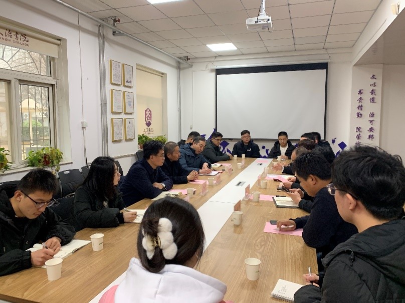 党委书记王朝晖、副院长段玉岗、院长助理王永泉、组织员包凯、教务员李想一行走访钱学森书院、彭康书院和文治书院,与书院辅导员就“双院协同育人工作”“辅导员职业发展”等方面进行交流。走访结束后,18禁直播