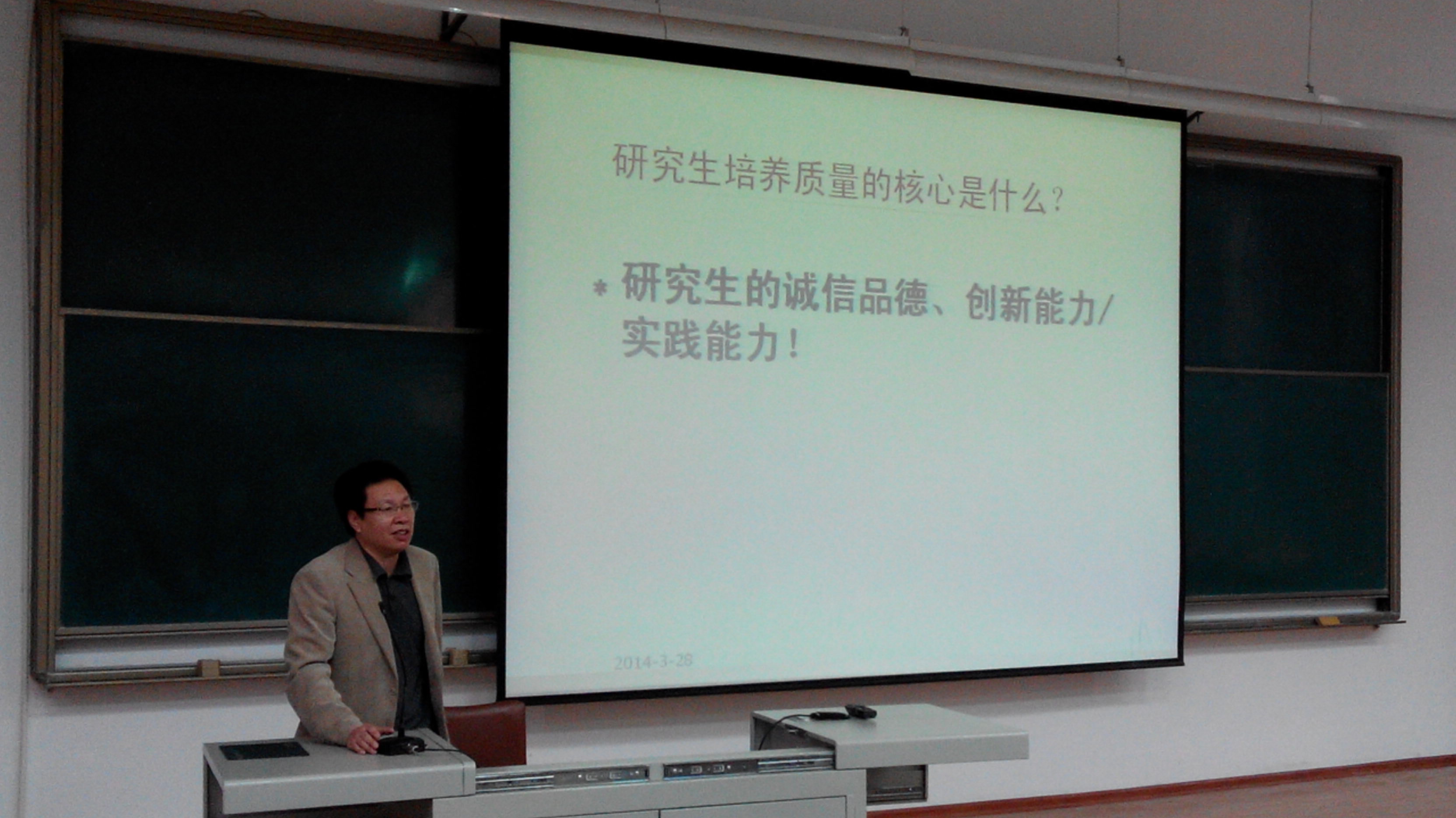 副院长李兵教授就近期关于长学制研究生中存在的问题做了阐述和解答,强调了诚信的重要性,提倡研究生从自身做起,诚信科研,自觉抵制学术不端行为的发生,全院同心,共建良好学风。