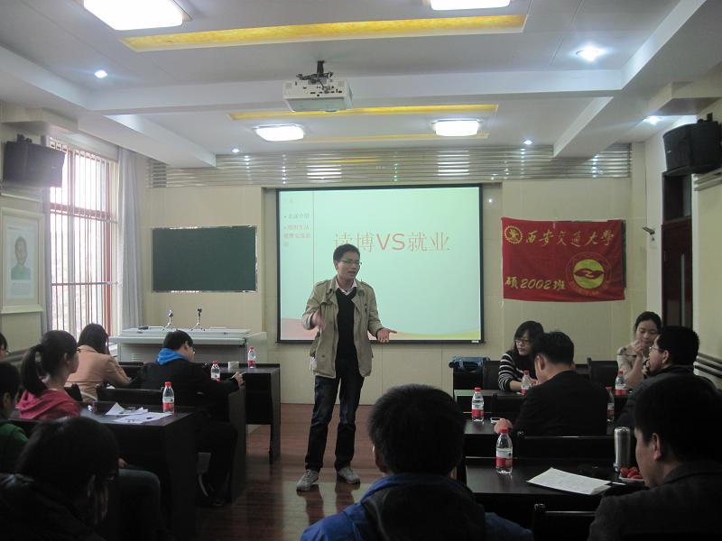 的研究生更应该勇挑大梁,不断探索新领域新知识,用科技创新振兴中国工业;周进、李品、高伟芳等同学表达了支持先就业的观点,并以生动的例子支持了自己的观点;杨文剑、刘伟强、孙文涛等同学表达了支持读博的观点,并以自身的例子说明了读博的原因;刘艳、罗雪、陈成、赵洁等女同志还针对女生读博话题进行了辩论。整个讨论环节热烈而不失趣味,辩论多次被热烈的掌声打断。