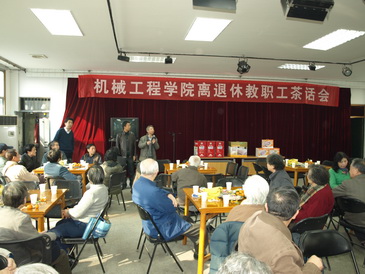 离退休人员迎新年茶话会在交大三村老年活动中心举行。学院党委书记梅雪松、常务副院长洪军、党委副书记杨鹏以及工会主席吴成军与参加茶话会的100余名离退休老同志欢聚一堂。会议由洪军副院长主持。