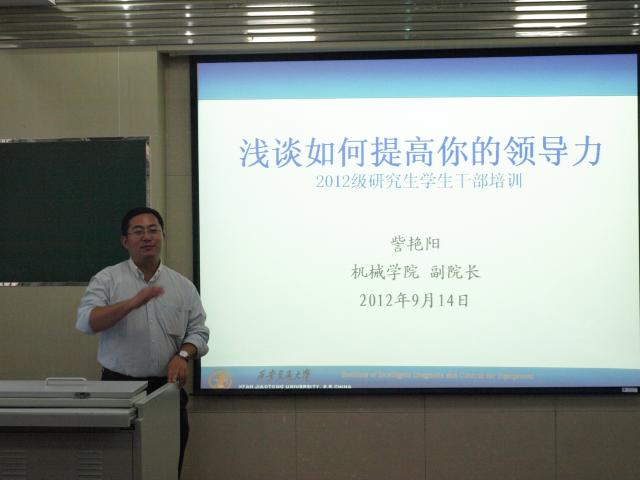 的教育管理理念与措施,新一代研究生的特点与问题,对班干部的定位与理解以及什么是领导力等五个方面为新生干部做了精彩的报告。其中,他特别强调了“干部”二字的含义,并希望大家多思考多实践,培养自己出色的组织领导能力。