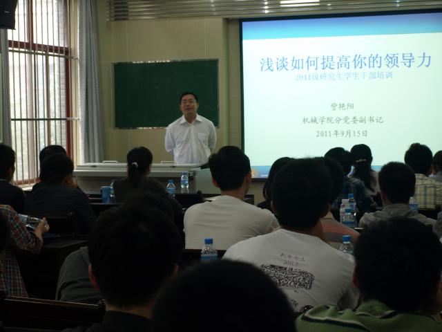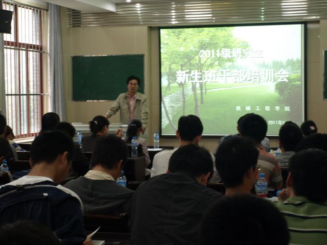 的教育管理理念与措施,新一代研究生的特点与问题,对班干部的定位与理解以及什么是领导力等几个方面为新老干部做了精彩的报告,并对新当选的班长、支部书记提出了建议和要求,希望大家要多思考多实践,培养自己出色的组织领导能力。