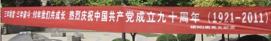 硕901党支部以建党90周年为契机,深入开展建党90周年庆祝活动,以条幅签名留言的形式,拉开了全校范围内的中国共产党成立90周年活动的序幕。