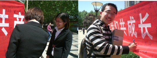 硕901党支部在康桥苑举办 “三年奋斗,三年展望,90年我们共成长” 纪念建党90周年大型条幅签名活动。上午9点,支部成员在康桥苑门前拉起了字幅,康桥苑是人流较多的地方,继而邀请过往的同学和老师以签名的形式来普及有关方面的知识。现场气氛很活跃,本次活动得到了同学和老师的支持,他们积极的参与其中留下自己的名字和对党生日的祝福。值得指出的是,由于现场互动的比较好,不仅仅在校的老师和同学积极参与其中;很多校外的路过的群众也参与了这次签名活动。
