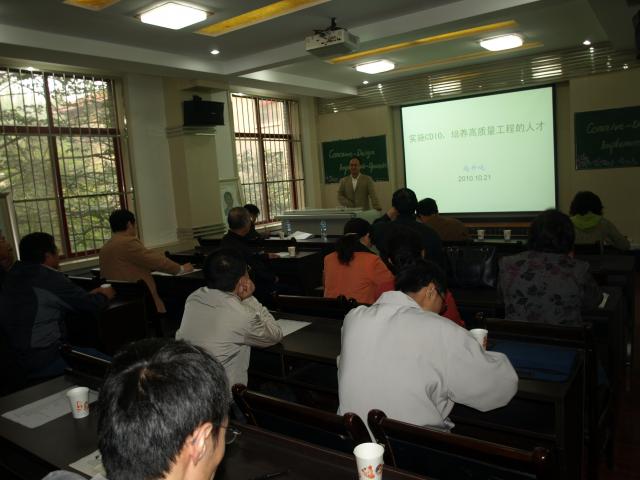 2010年10月21日下午,在18禁直播 第三会议室召开了CDIO培养模式研讨会,学校副教务长邱捷教授,学院党政领导,各系所教学负责人,学院全体教授等30余人参加会议。会议由常务副院长高建民教授主持。
