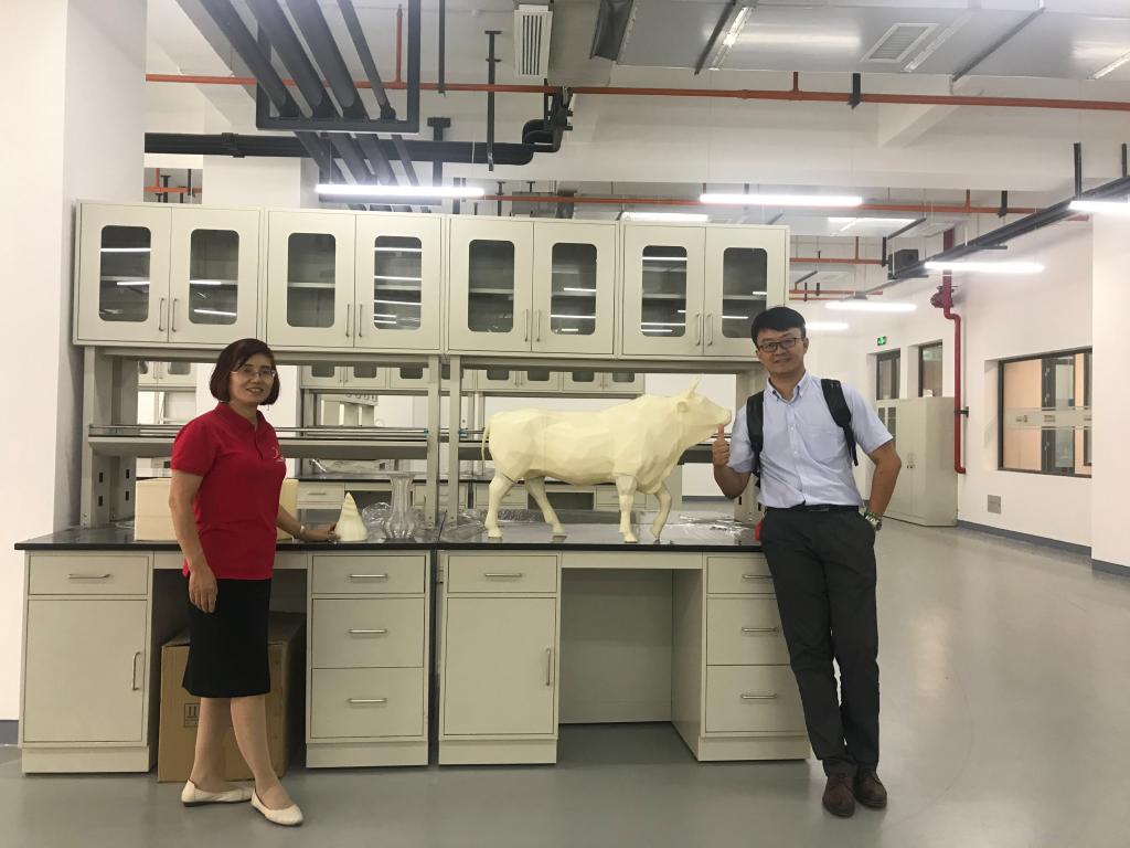 西咸同方丝路未来创新研究院院长助理兼战略合作部部长参观:大尺寸3D打印的牛。