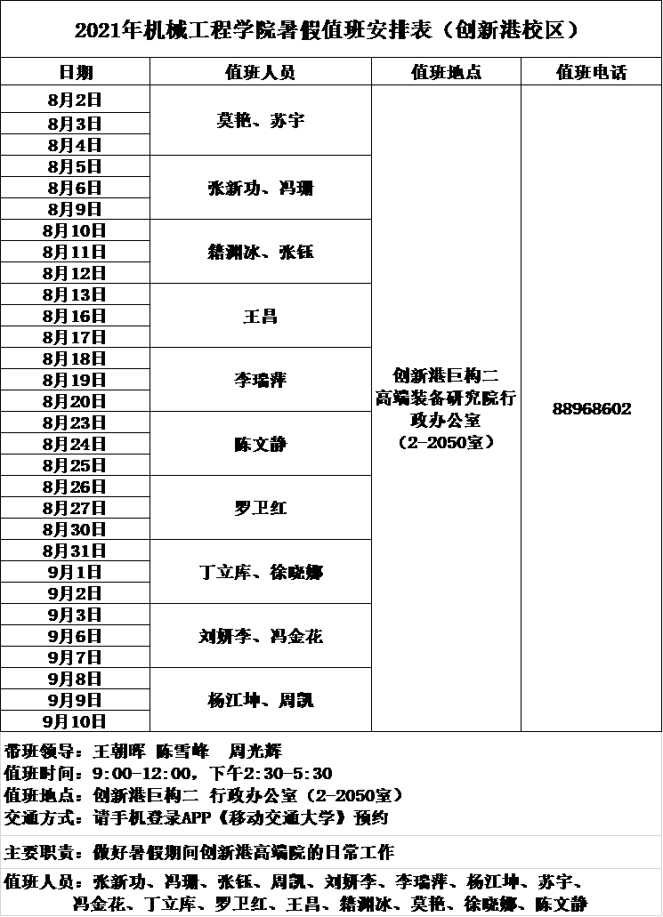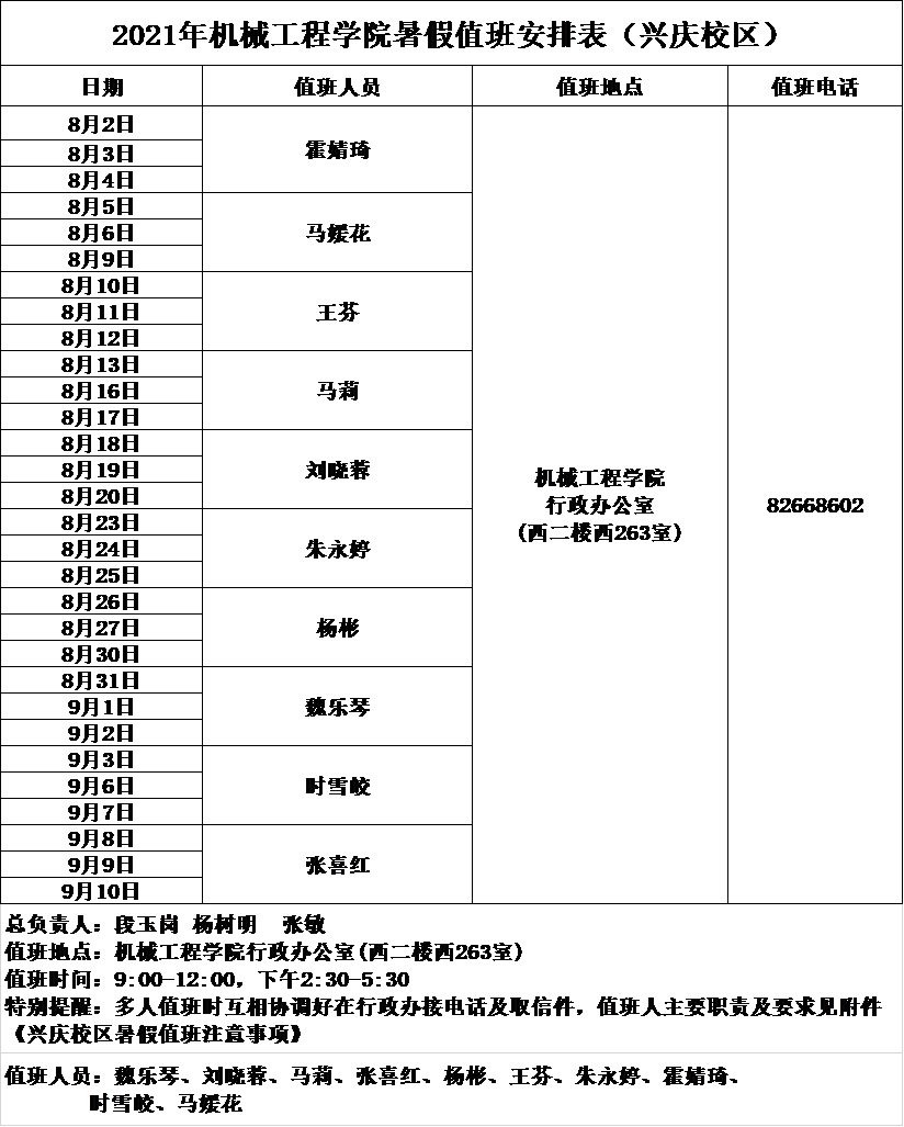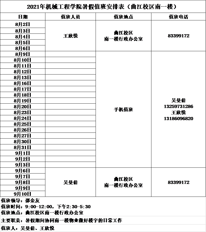 2021年18禁直播 暑假值班安排表