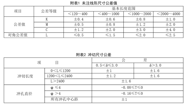 剪切口无毛刺、凹凸不平、拉断、变形现象,长、宽、对角线尺寸在图纸或者《未注线性尺寸公差》规定范围。见附表1