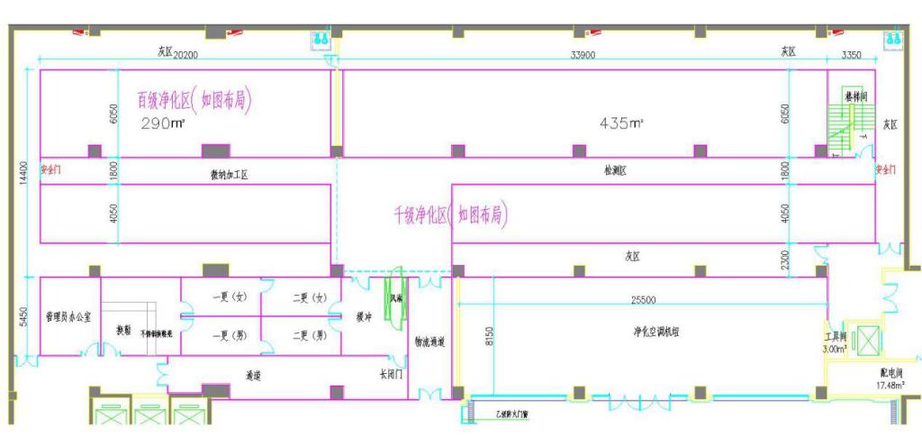 2)区域(地下一层):百级和千级