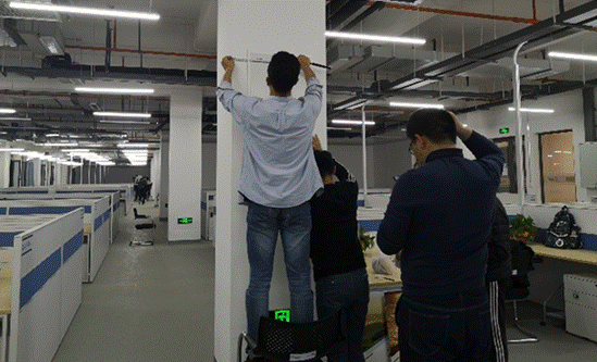 时至22点,虽然时间已经较晚,但支部成员仍以极大的热情投入到志愿活动中。在支部书记的带领下,支部成员分成了若干个小组,各组成员齐心协力,分工明确,先用卷尺测量确定文化板孔洞安装位置,再用小锤准确安装无痕钉,最后将文化板按照指定词组有条不紊地进行挂置。